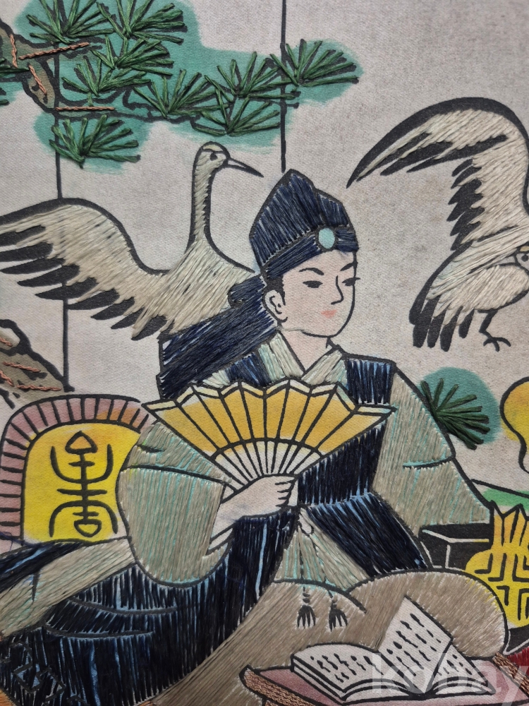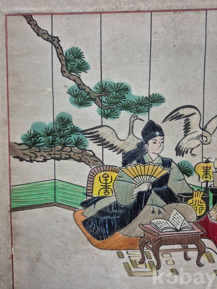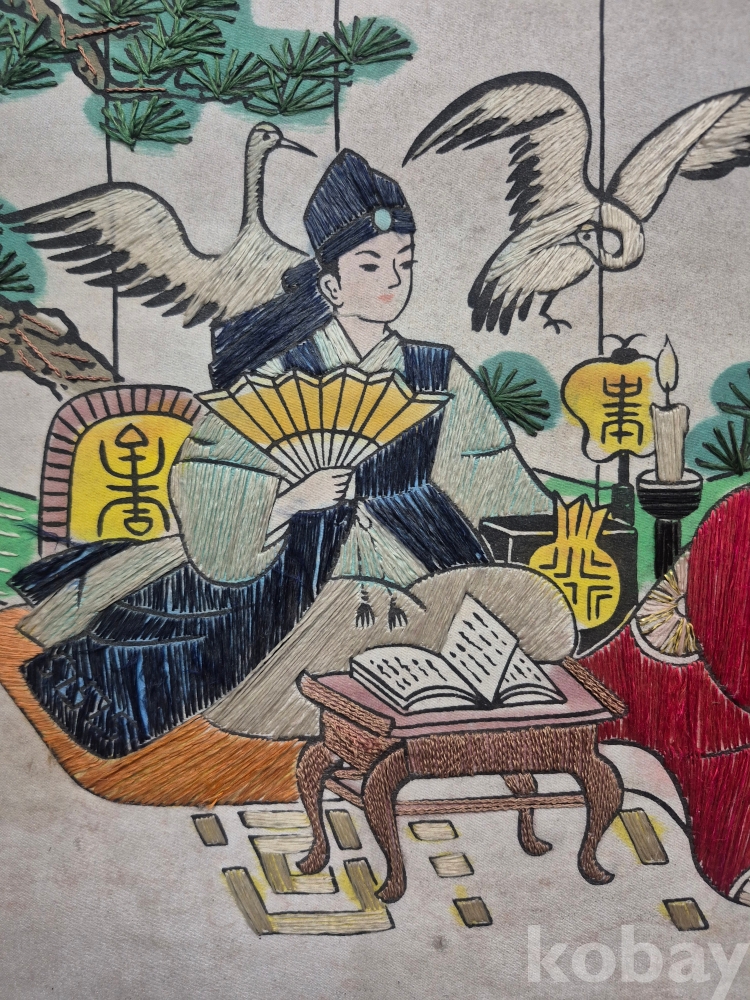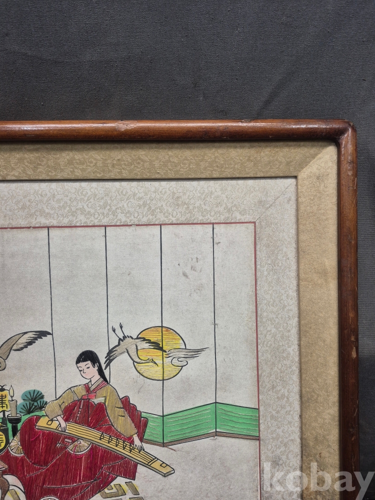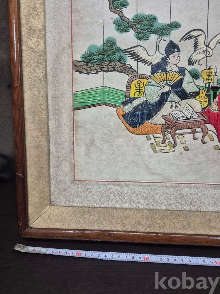 1970년대 이몽룡과 춘향이를 묘사한 실로 만든 작품 원목에 수를 놓아 만들어져 있어요 60*48*4
