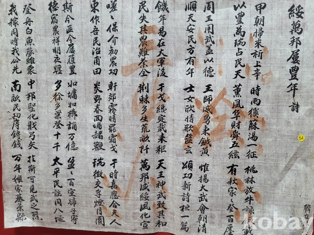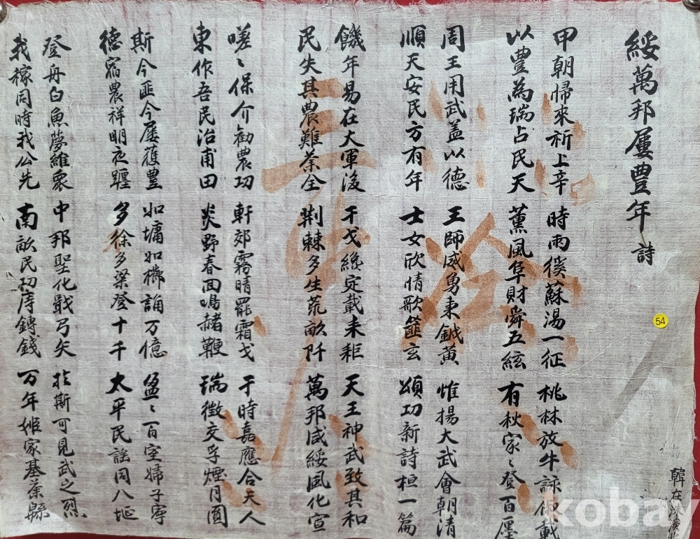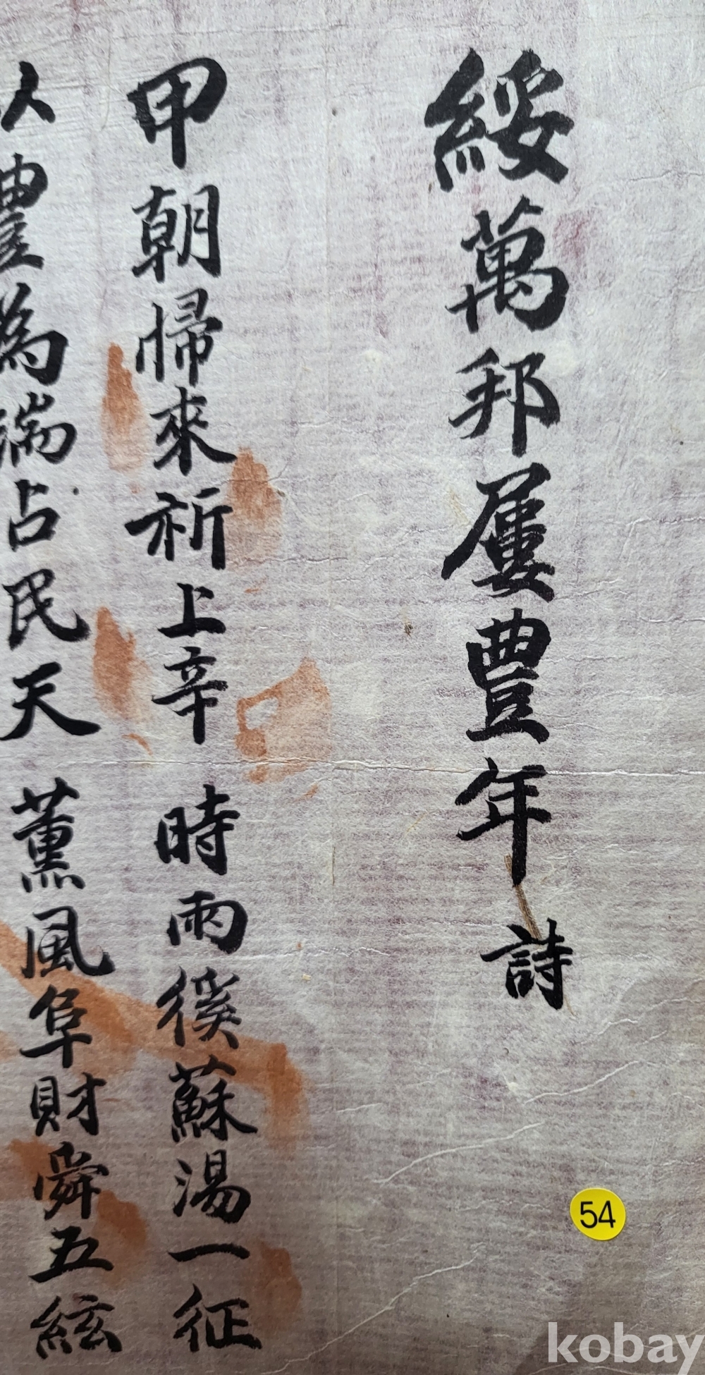 54호 하나下노랑봉투 번 //// 구한말 연대 갖춘 다듬이 장지에 명필로 쓰여진 시문장(詩文章)입니다,