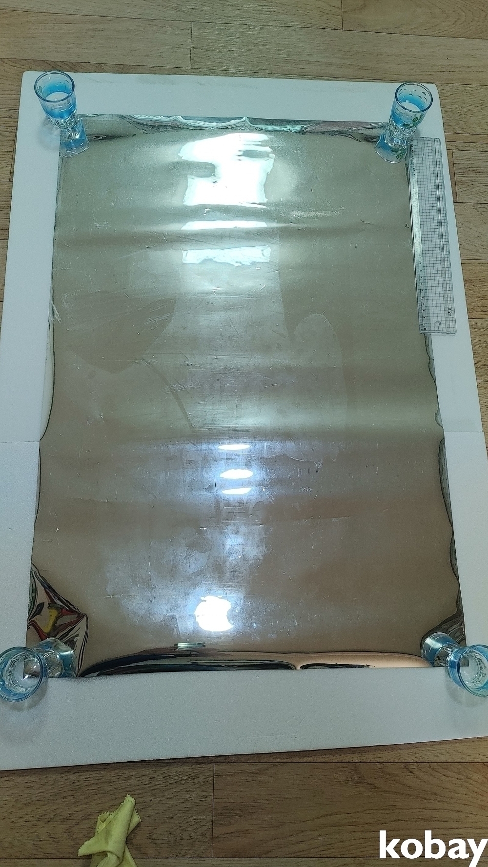 모서리쪽 재질측성상 약간 구김 흔적 사진참조