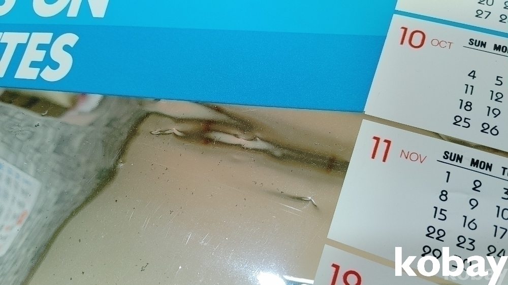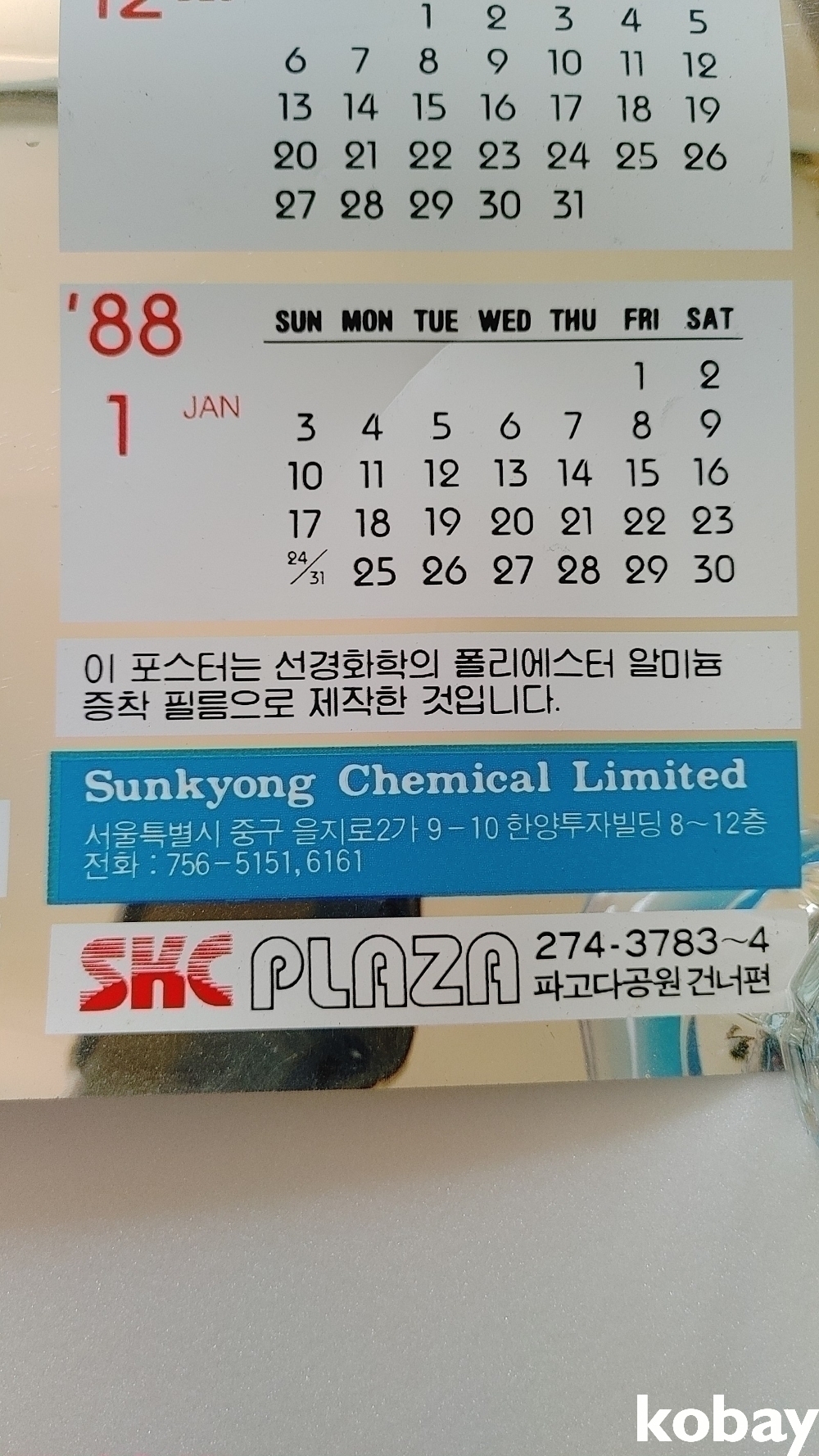일반 종이달력과 달리 선경화학에서 만든 알미늄 증착필룸으로 만든제품입니다 앞면에 얼룩같이 보이는건 빛 반사입니다 ^^