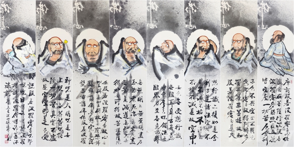 월광[月光] 스님 달마도[達磨圖] 8폭 作品 < 전시회 출품 작품 >