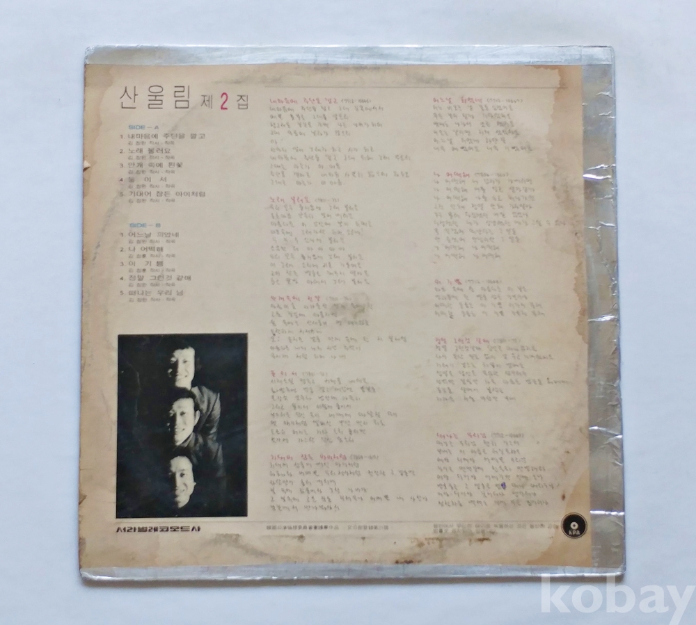 | 자켓상태 | EX : 약간의 마모, 모서리 찢김 존재 | 음반상태 | VG : 생활 기스 다수, 가벼운 노이즈 존재 | 발매정보 | 알수없음 | 가사지여부 | 무 |