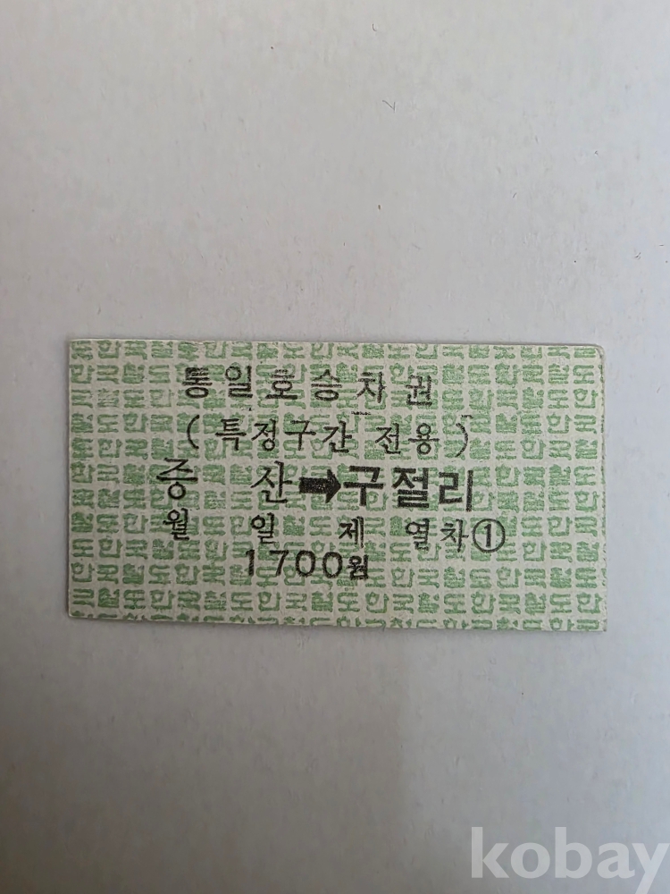 통일호 에드몬슨 승차권입니다