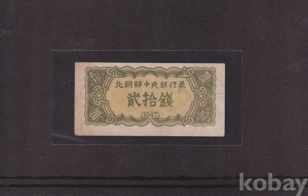 -희귀- 윗동네 1947년 투문 오리지널 20전 사용제 극미 지폐