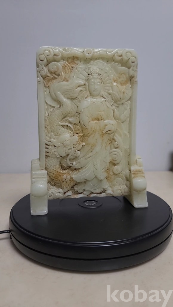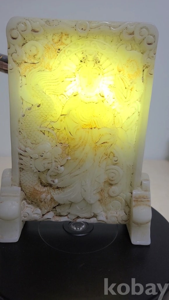 옥 한 덩어리를 잘 깎아만든 조각상입니다. 크기도 크고 무게감도 뛰어난 옥 한덩어리를 조각을 하였습니다. 조각이 멋지고 섬세한 작품성 넘치는 옥 공예품 소개 합니다.