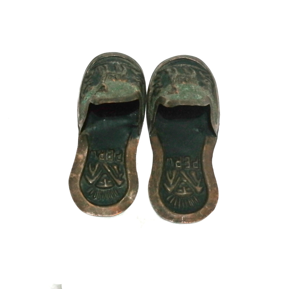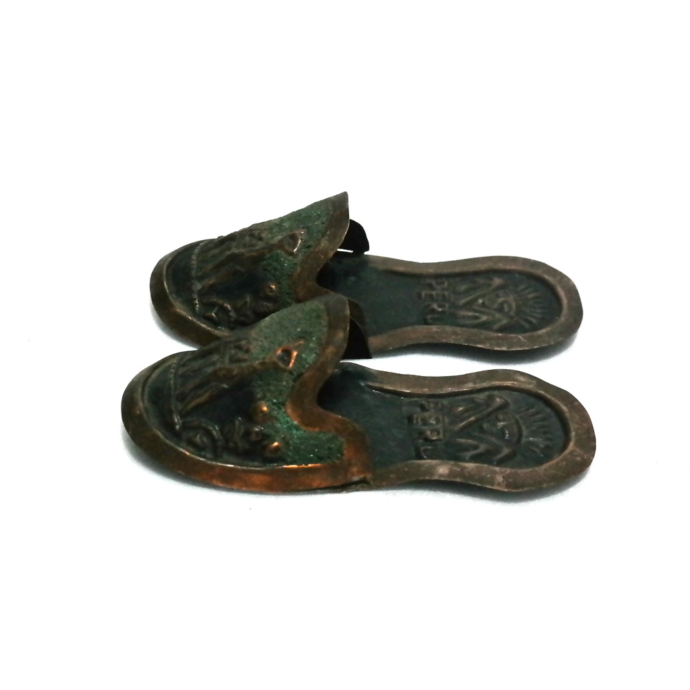 페루에서 황동판으로 만들어진 자그마한 신발모형 핸드메이드 빈티지 장식 입니다.