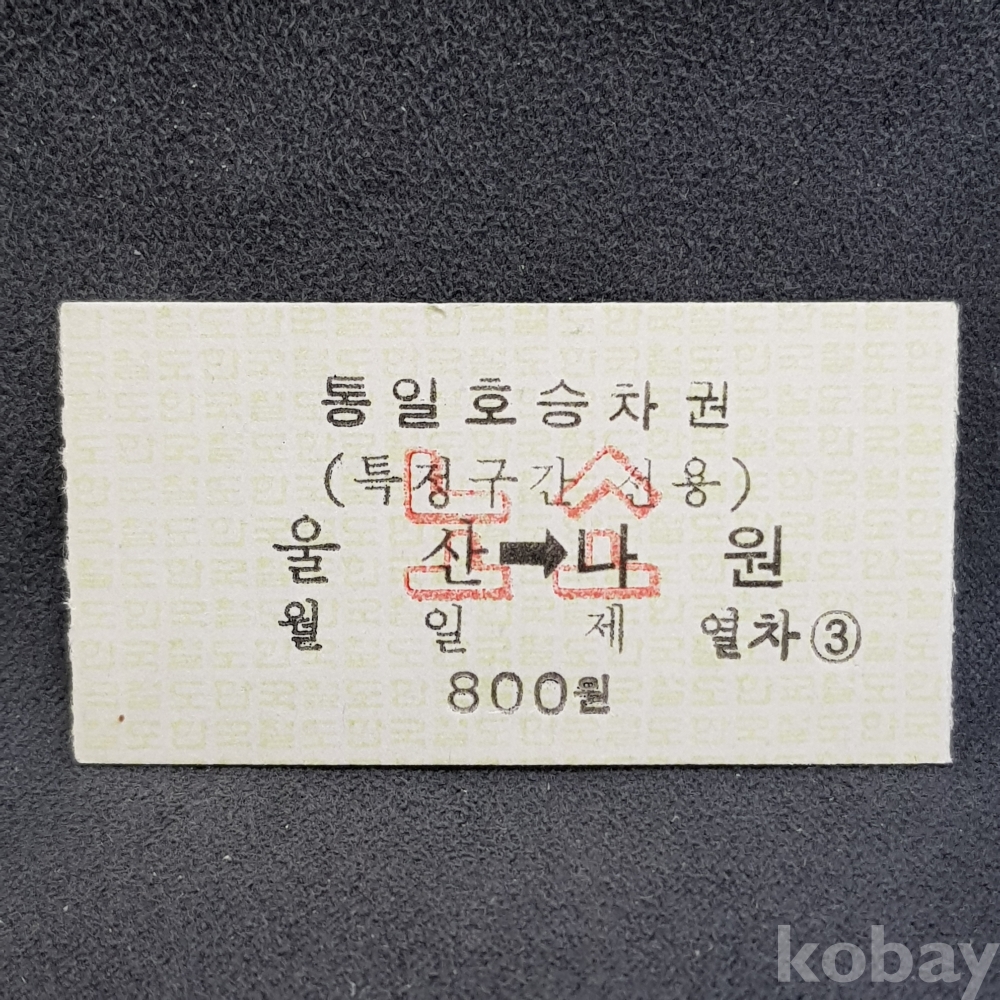 - " 울산 ▶ 나원 " 미사용 통일호 승차권(특정구간전용) 노소 800원