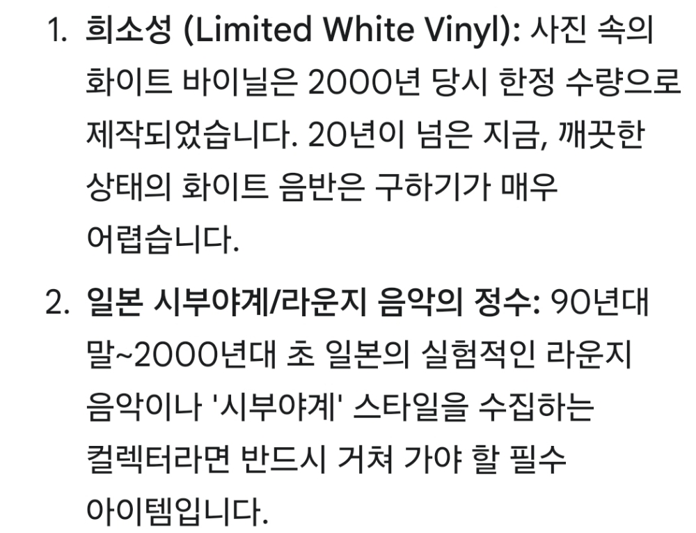 | 자켓상태 | NM : 개봉했으나 미사용, 자켓 손상 없음 | 음반상태 | NM : 개봉했으나 미사용급, 스크래치 없음 | 발매정보 | 초반 | 가사지여부 | 무 |
