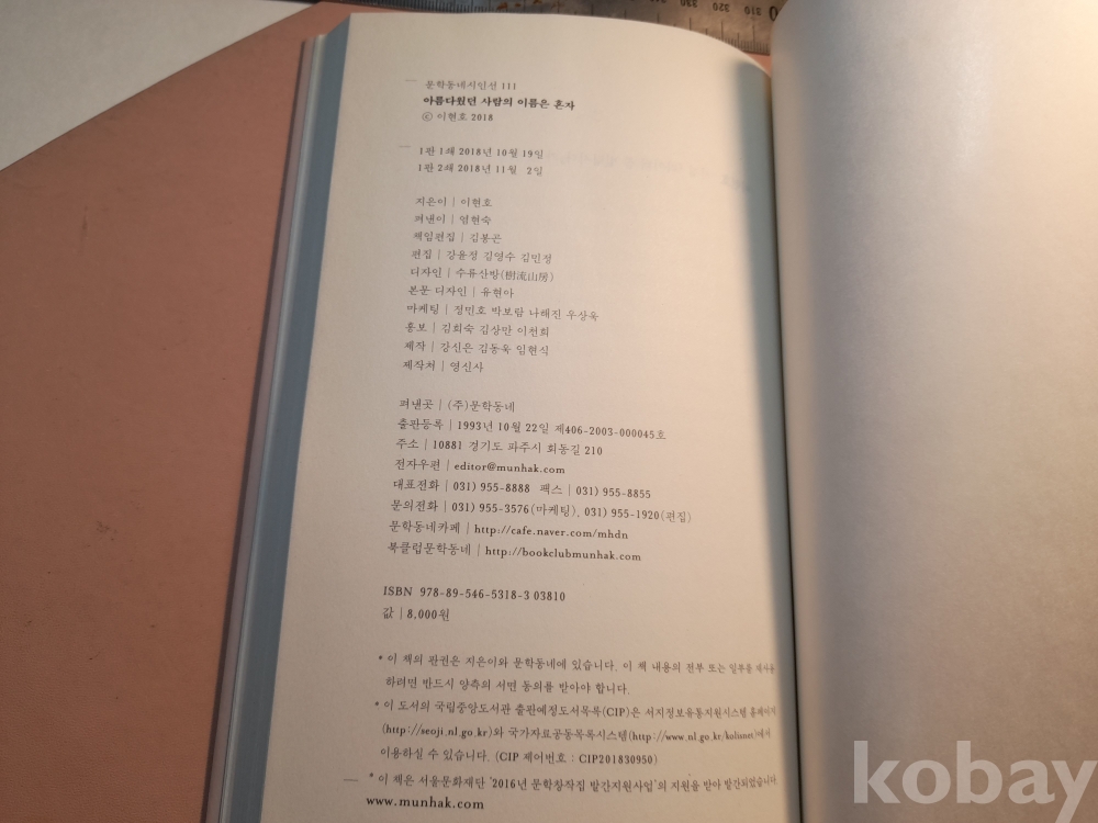 이현호 시집 아름다웠던 사람의 이름은 혼자