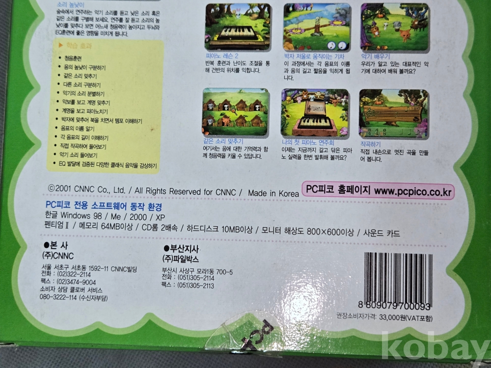 2001년 제조 == PC피코 = 숲속의 동물 음악회 == 어린이 교육자료 = 미개봉 박스형태