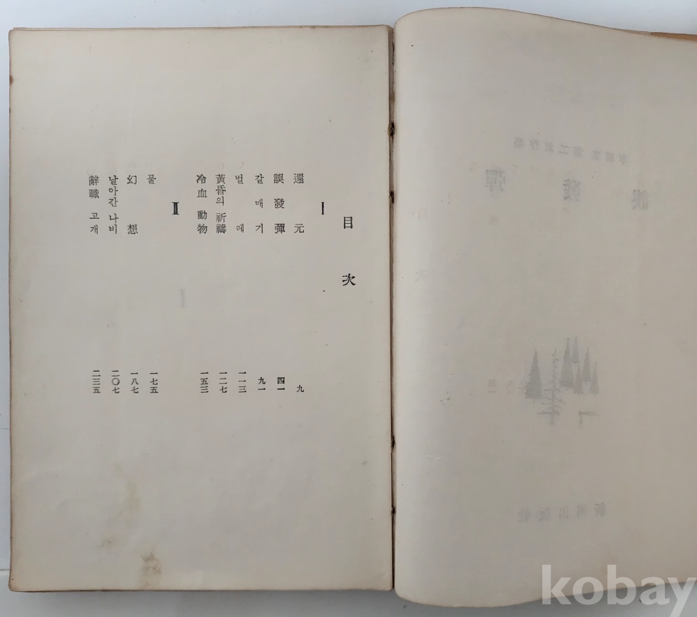 참고 사항 | ▶ 내용: 還元 -- 誤發彈 -- 갈매기 -- 벌레 -- 黃昏의 祈禱 -- 冷血 動物 -- 물 -- 幻想 -- 날아간 나비 -- 辭職 고개 ▶ 이범선은 1958년 처녀창작집 『학마을 사람들』로 제1회 현대문학상 신인문학상을, 1961년 「오발탄」으로 제5회 동인문학상과 1962년 제1회 오월문예상을, 또 「청대문집 개」(1970)로 제5회 월탄문학상(月灘文學賞)을 수상하였다. 창작집으로 『학마을 사람들』 · 『오발탄』 · 『피해자』 · 『분수령』이 있다. |