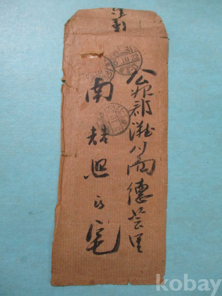 봉피앞면 우표없어 우표소인 20일 날자보이고 소화 5년 10월 22일 공주소인 선명 10월 23일