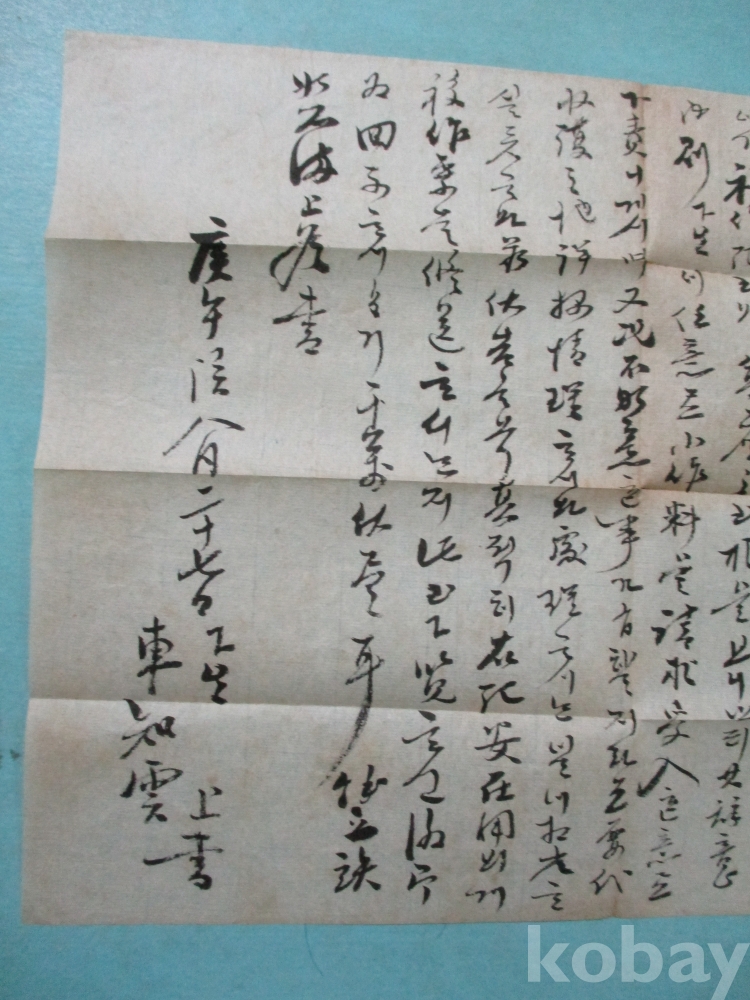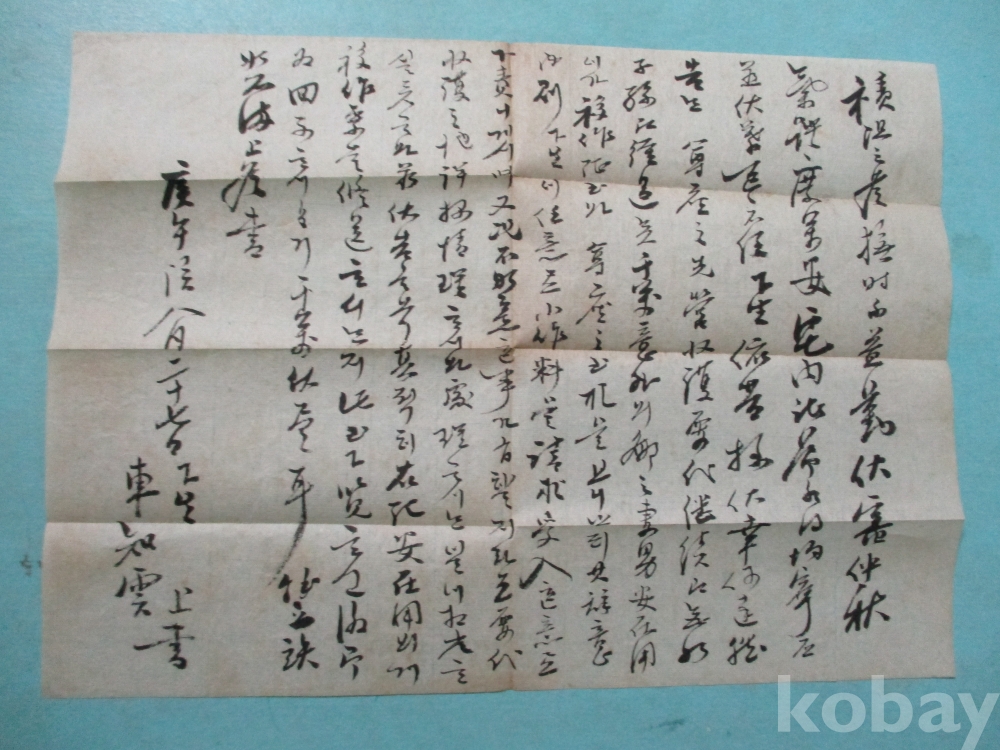 소화 5년인 1930년 경오년 음력 8월27일에 화선지에 쓰인 국,한 혼용의 한글간찰