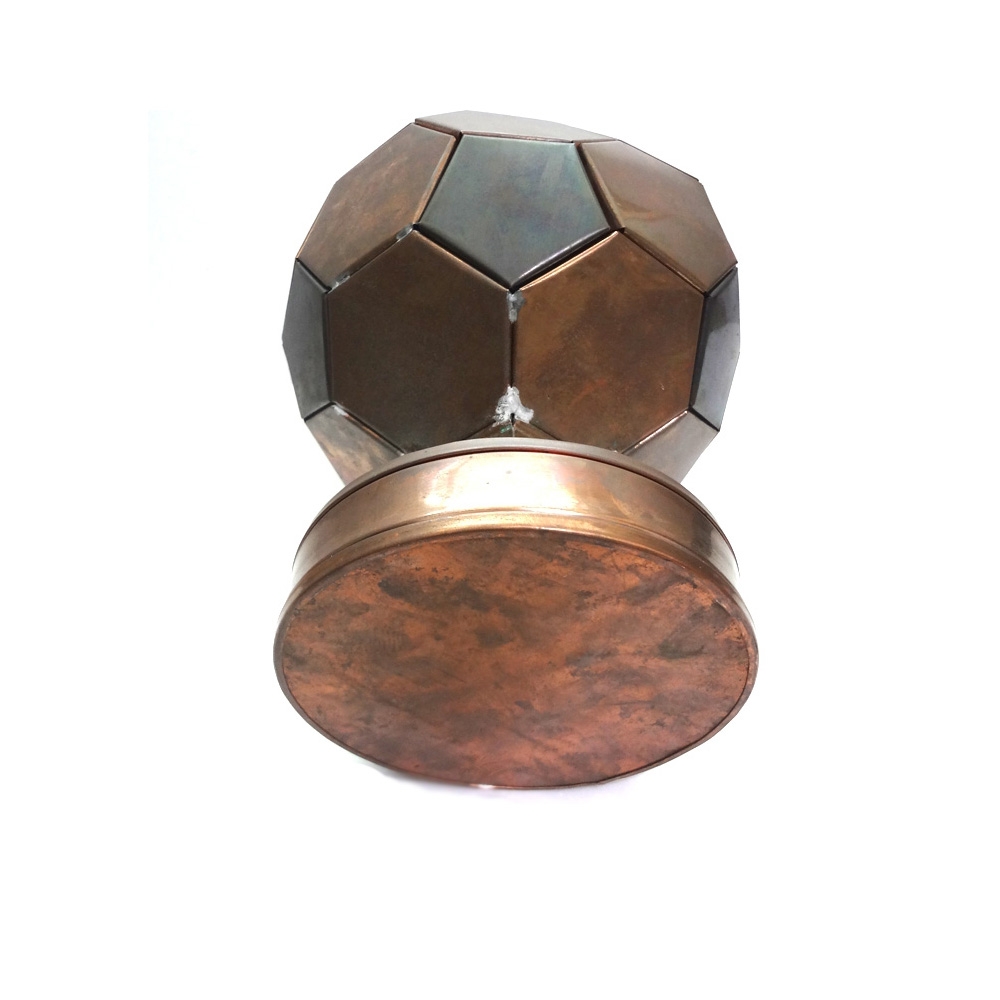 크기는 축구공 만하며 구리판 재질로 만들어진 공예품 입니다.