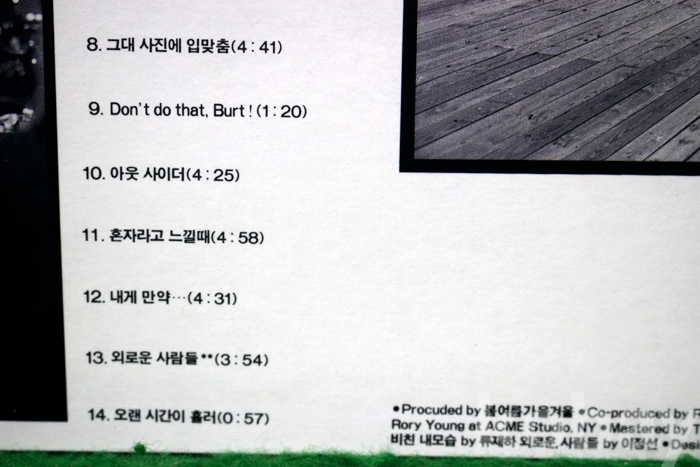 수록 곡 목은 사진을 참조하시기 바랍니다