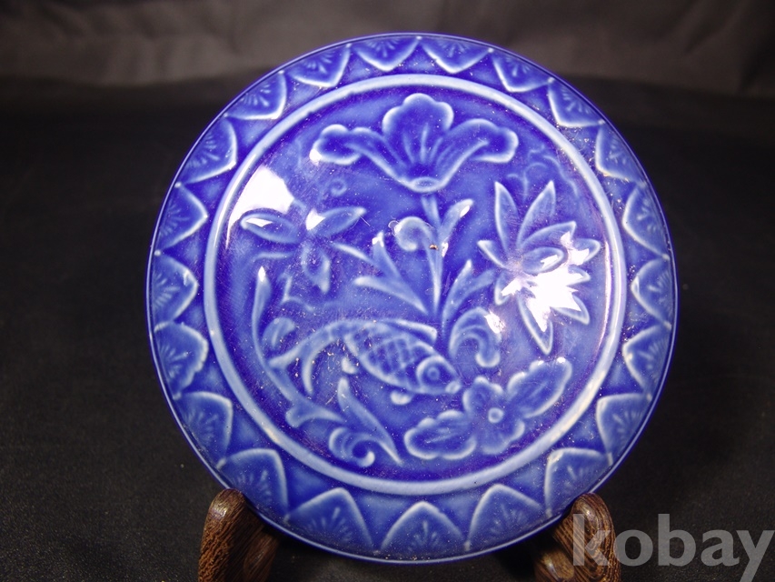 www45763 청유(靑釉) 양각 연화어문(陽刻 蓮花魚紋) 유개합(有蓋盒) /관(官)자 款