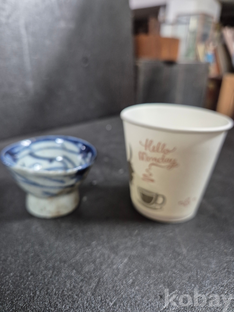 오래전 구입했던 물품으로 고급 코발트로 초문을 잘 그린 조그마한 도자기 잔입니다.