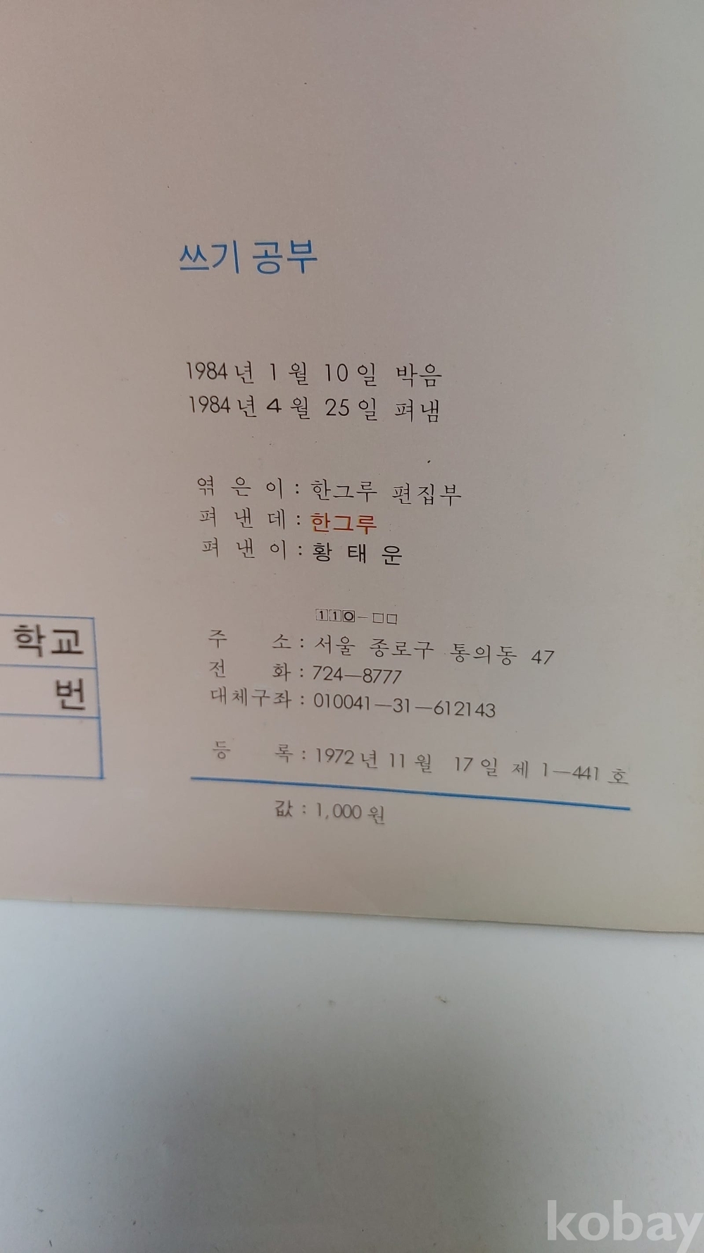 84년당시 가격이1000원였던 고가 교육용 노트입니다 당시 일반 문방구에서 팔던 노트가아니고 서적에서만 구할수있던 노트입니다