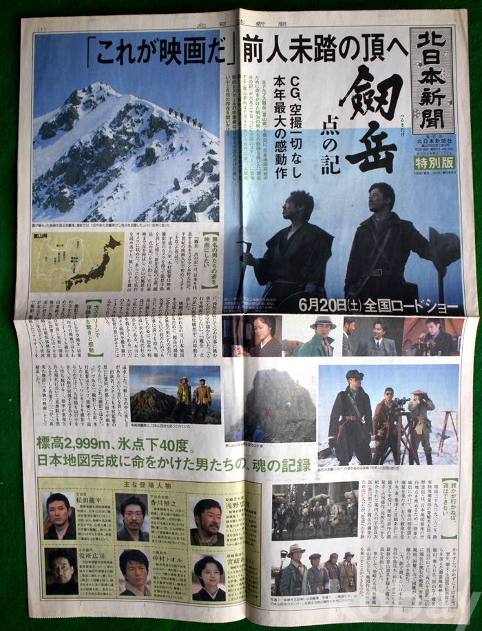 (영화자료) '劍岳(검악)' 홍보 신문 - 2009년. 일본 발행