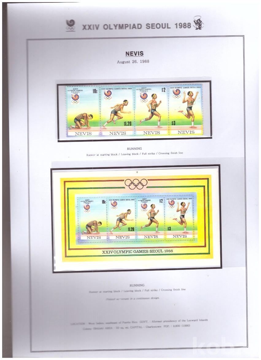 (서울올림픽) Nevis (네비스) 1988.8.26 달리기 strip of 4+sheet of 4 MNH