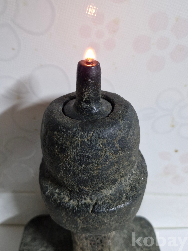 곱돌(활석)원석을 쪼으고 깍아서 받침과 대 호롱까지 한몸체로 만들고 뚜껑만 같은돌로 만들어 올렸습니다