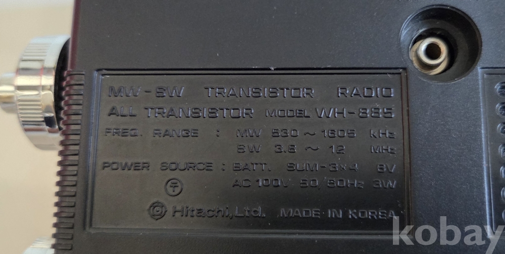 품 명 | 동작하며 비교적 상태좋은 대한민국 제조 HITACHI 8TR 2밴드 라디오 ***WH-885*** (극 희귀 모델) |