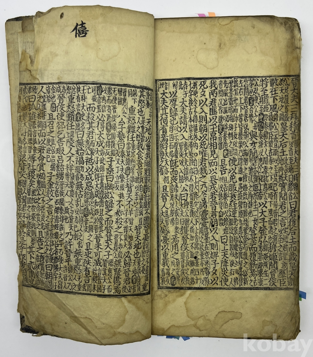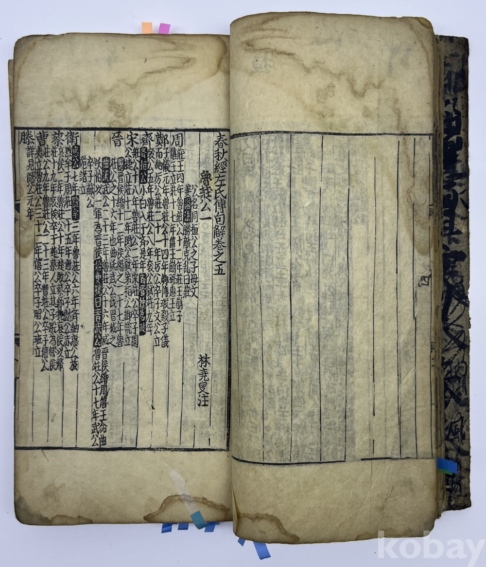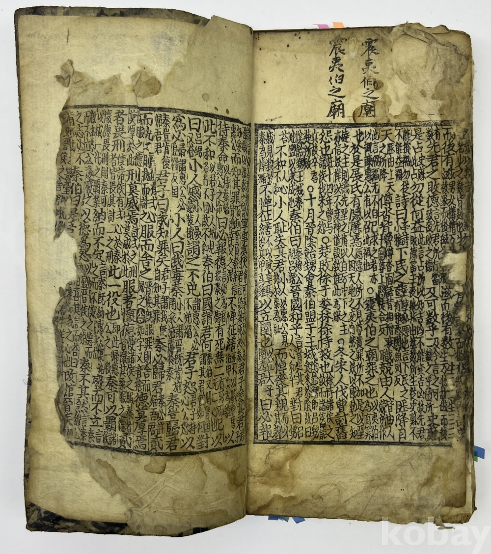 설 명 | 노의 좌구명이 저술한 “춘추좌씨전(春秋左氏傳)”을 풀이한 주석서이다. 권1 권두부터 5장 여 낙장으로 보인다. 권2 뒷부분과 3권 앞부분이 낙장이다. 권말 2장 찢어져 본문이 훼손된 부분이 있으며, 1장 구김과 찢김이 있다. 물품번호 7 | |||||
