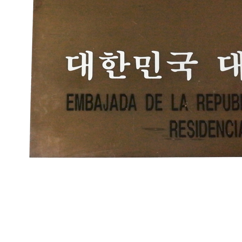 황동판으로 만들어진 대한민국 대사관저 안내판 입니다.