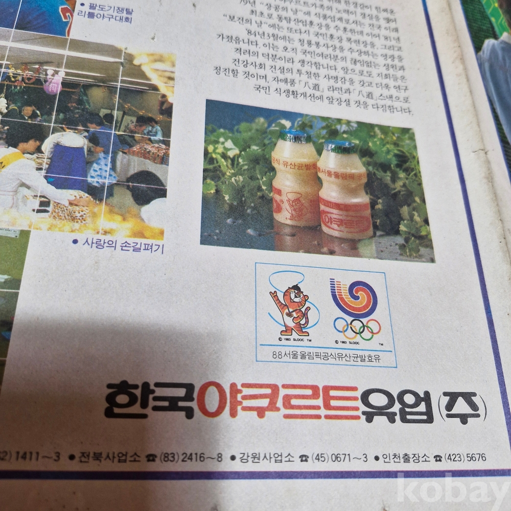 한국야쿠르트 88서울올림픽 공식로고 사용 기업 ㆍ럭키금성 테크노피아 광고 경향 87년12월23일 올려드립니다