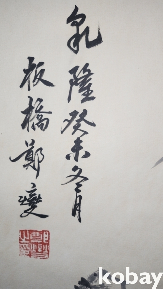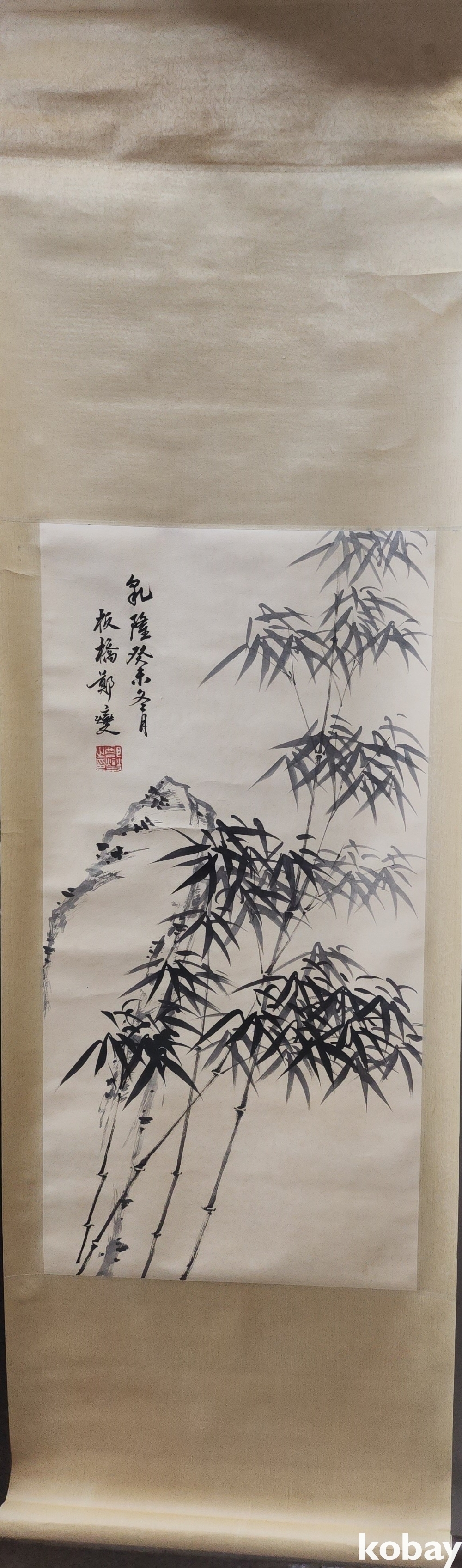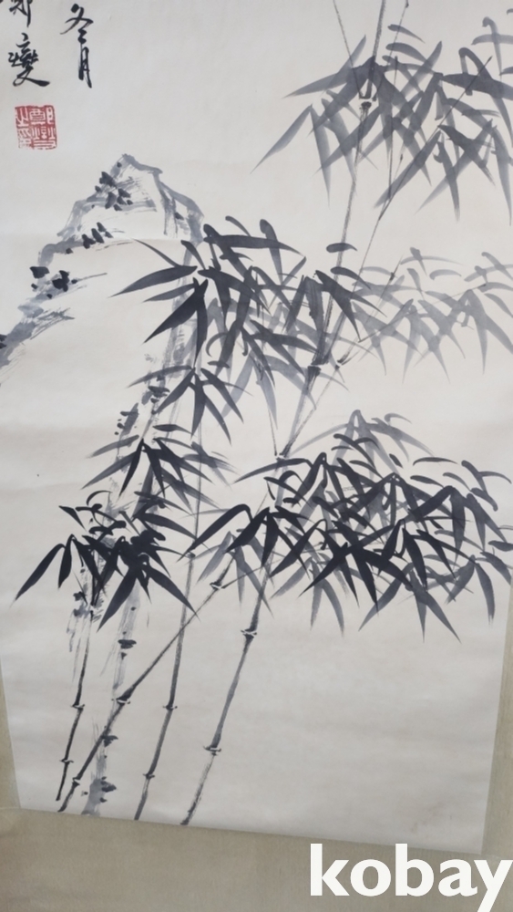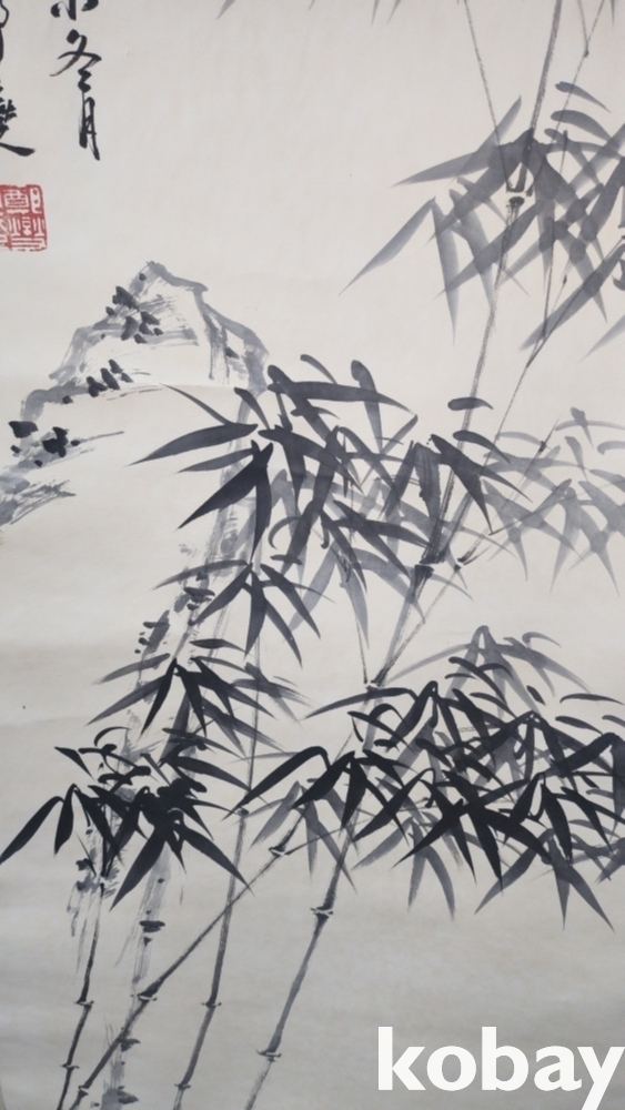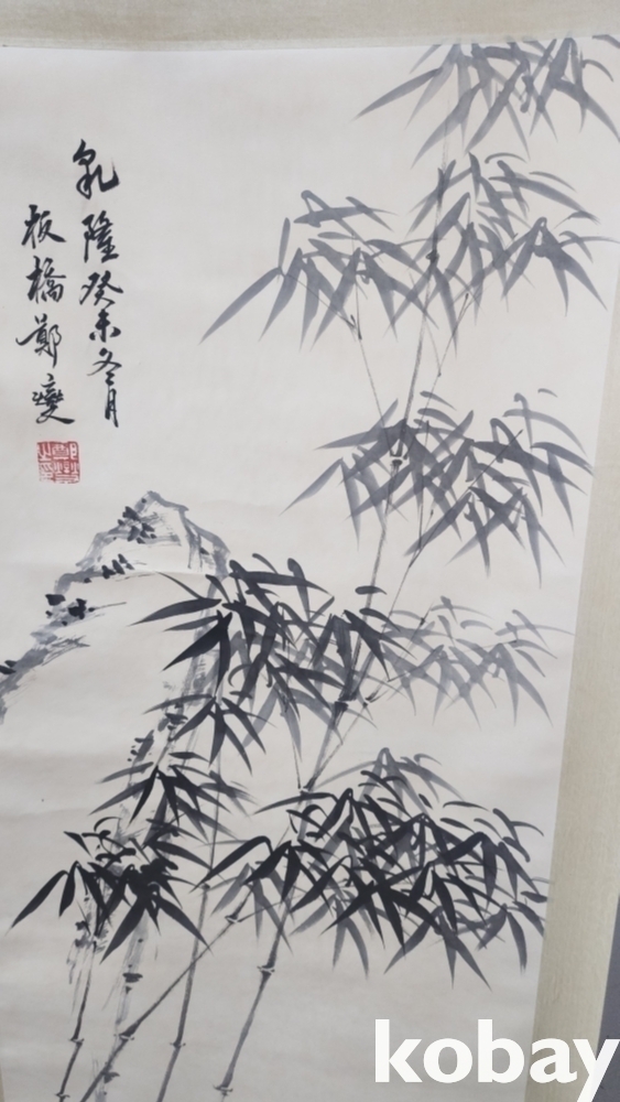중국화가 정판교 수결이 보이는 종이에 채색한 대나무 족자입니다,