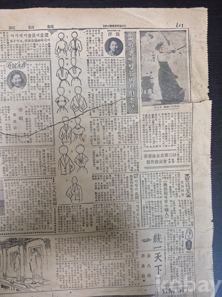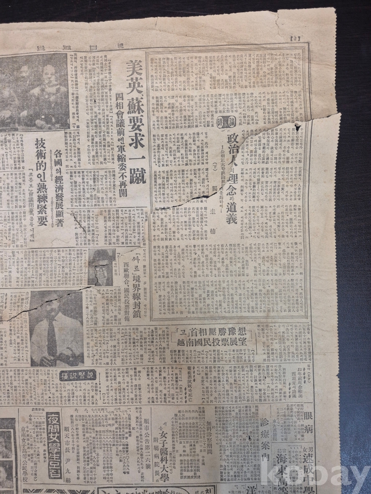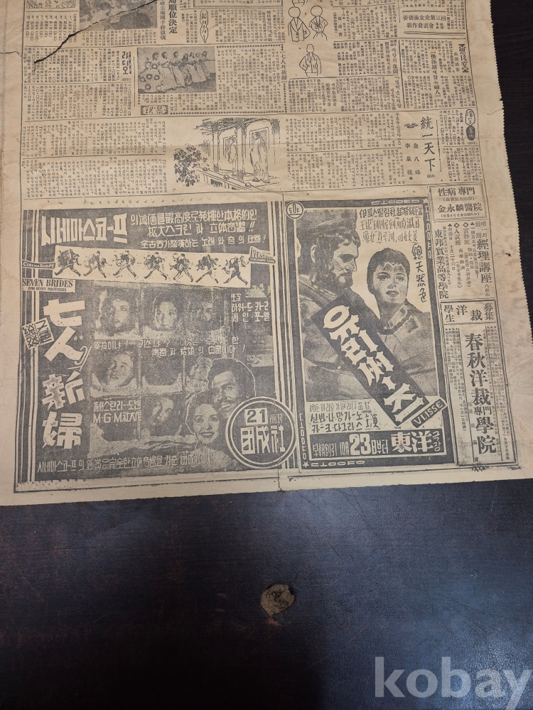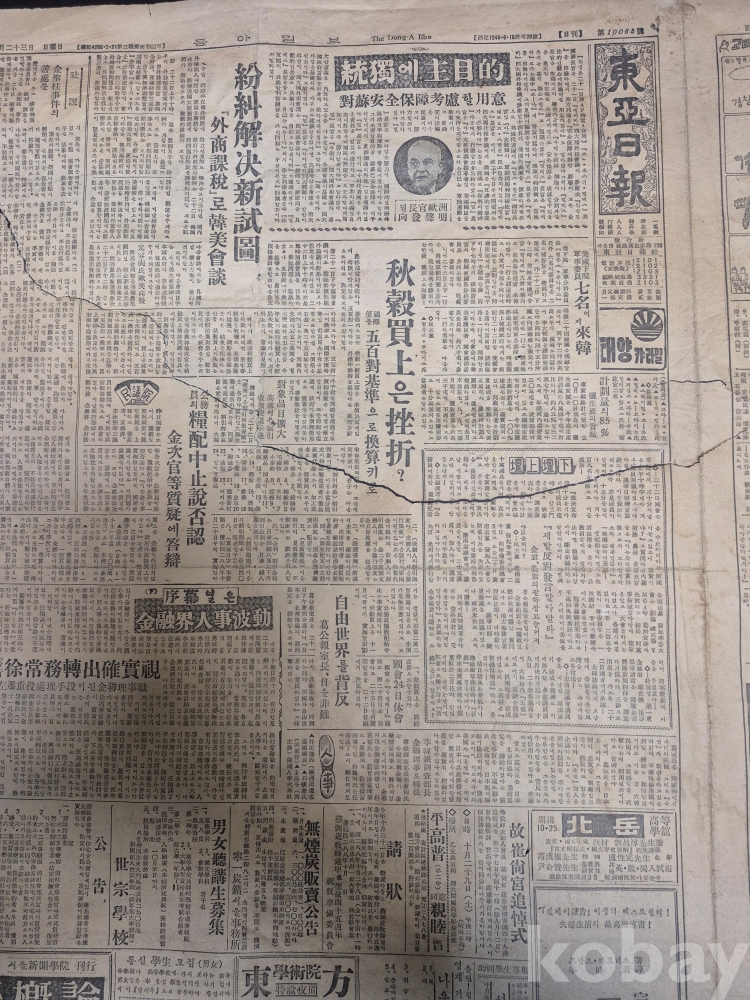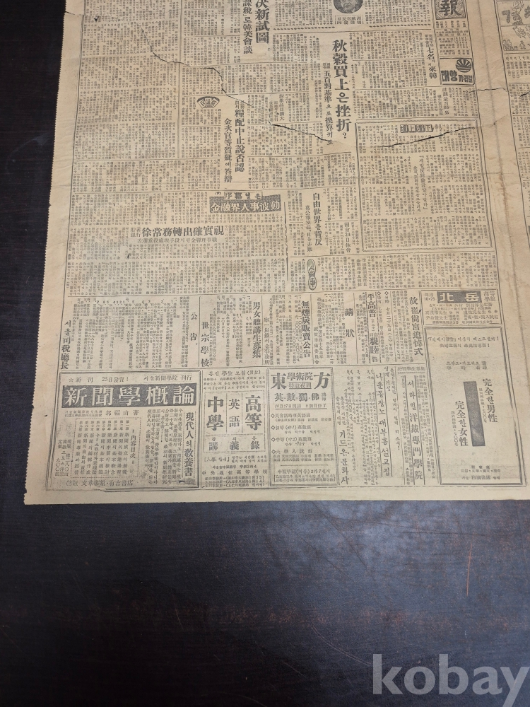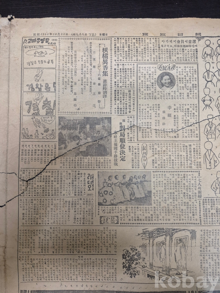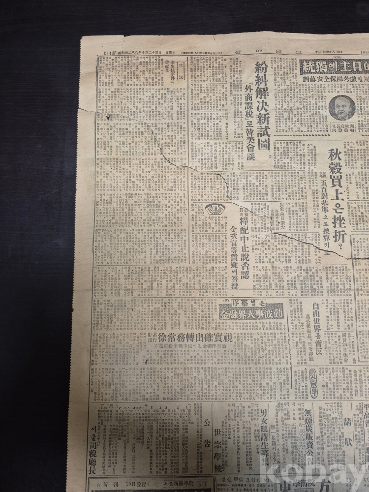 1955년 10월23일 동아일보 찢어진 신문 한점 45*35