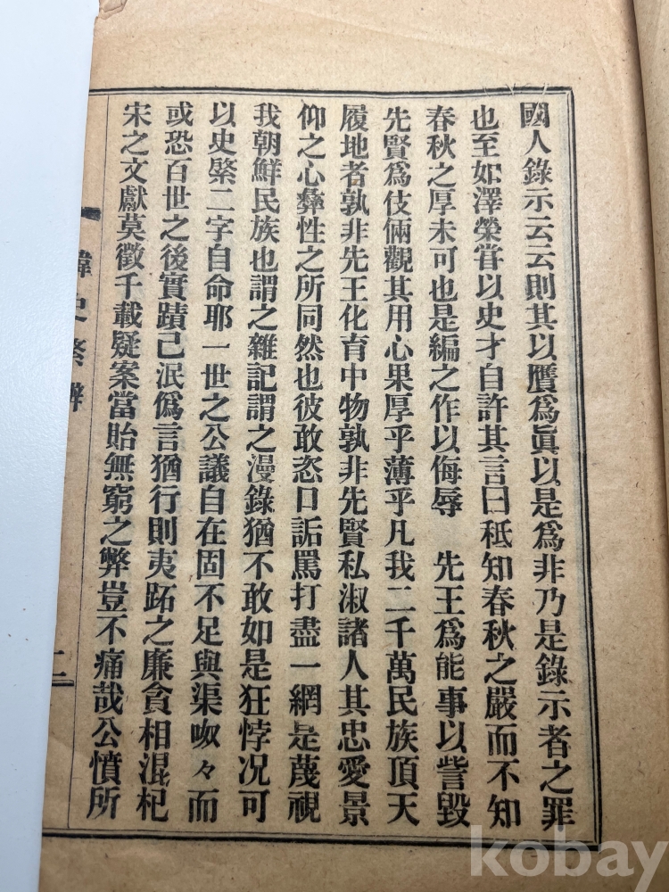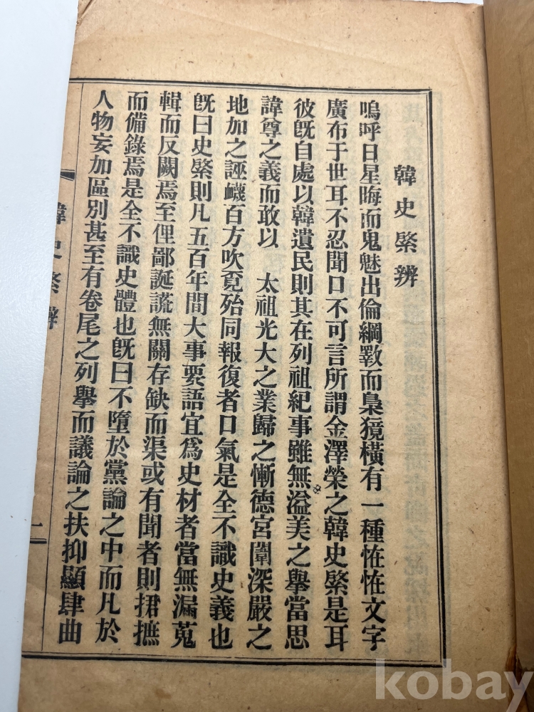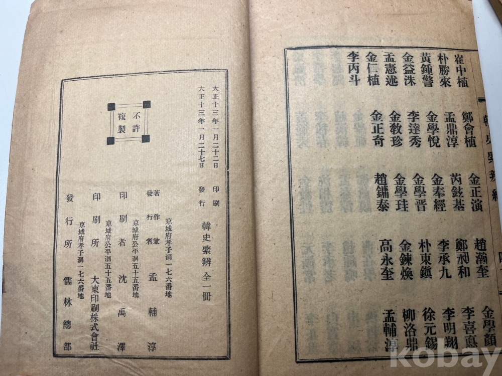 대정(大正) 13년(1924년) 2월 27일에 유림총부(儒林總部)에서 발행된 『한사계변(韓史綮辨)』 초판본