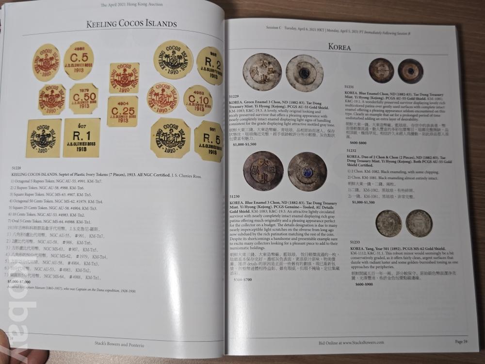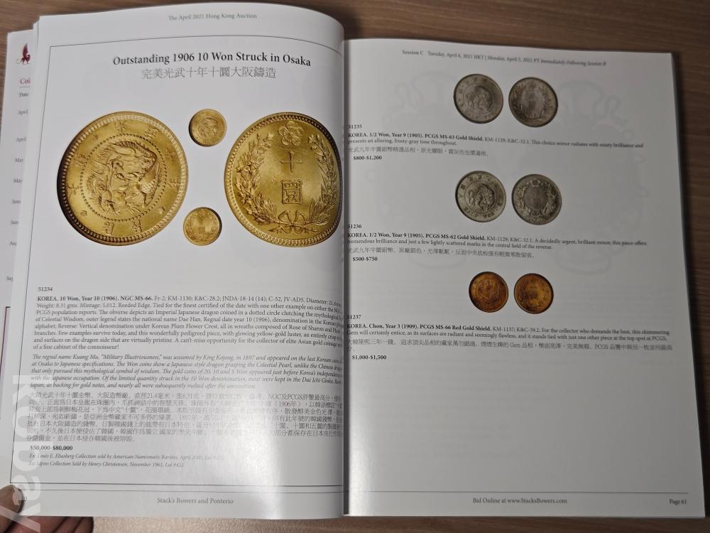 2021년 4월에 개최된 스택스 바우어스(Stack's Bowers & Ponterio)의 홍콩 화폐경매도록.