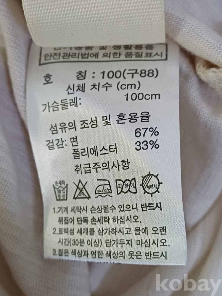 | 물품 크기 | 가슴단면56 총장64 |