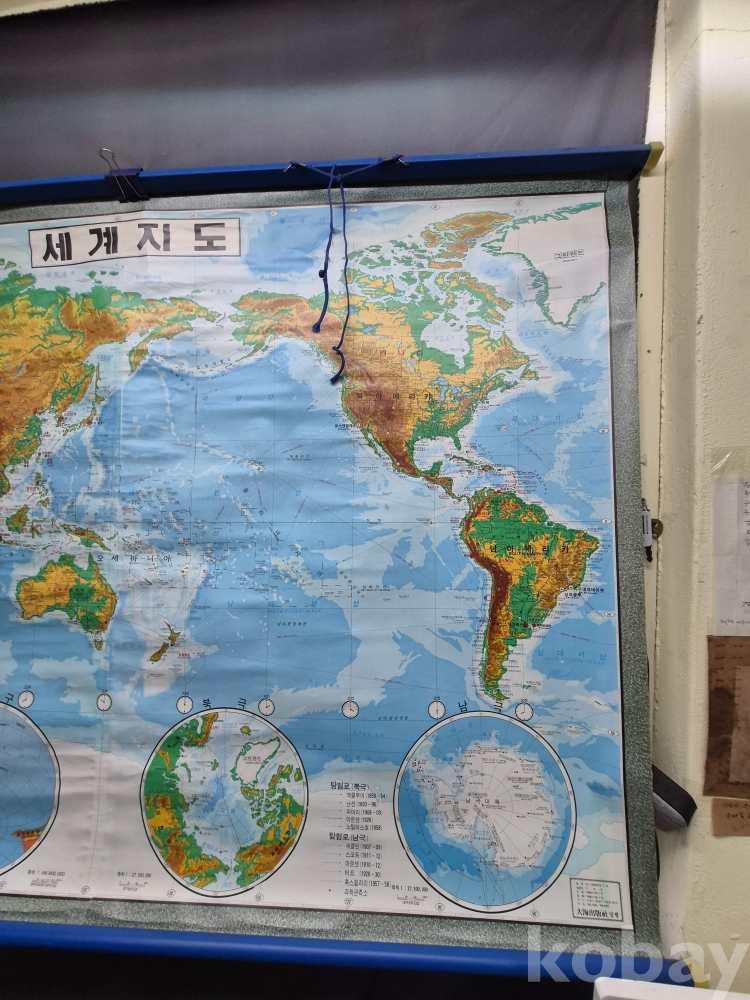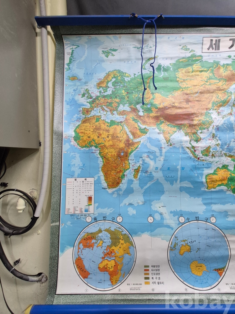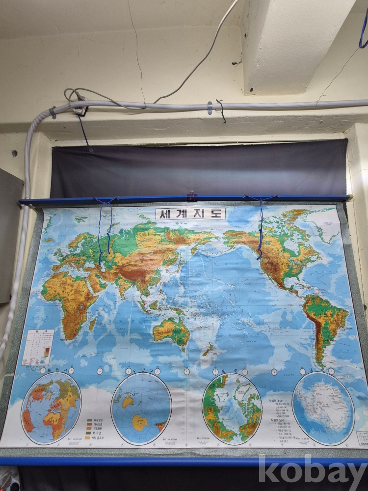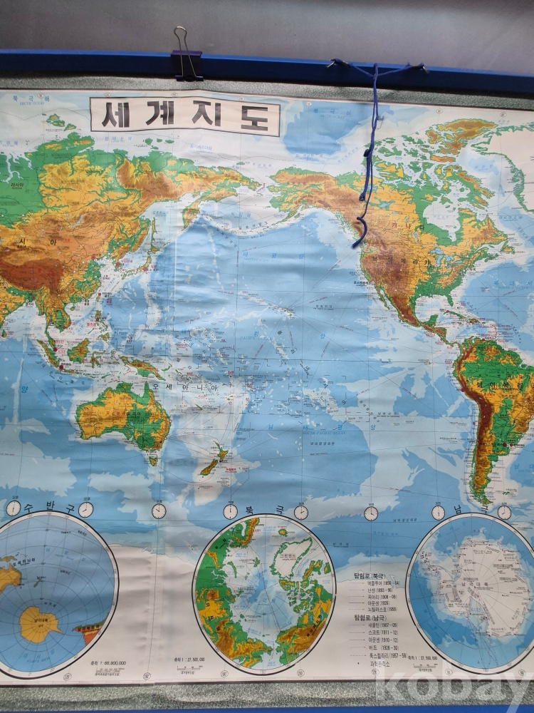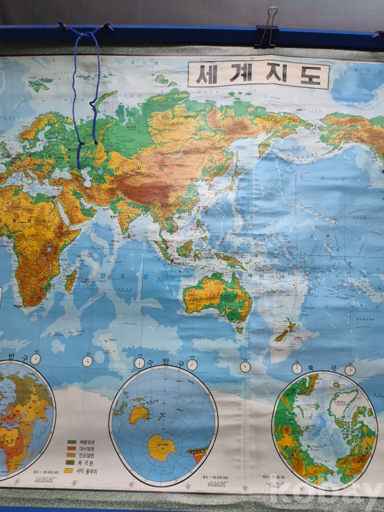 1980년대 지리 사회 교재용 세계전도 지세도 160*5*5