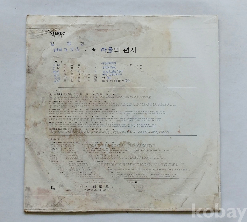 | 자켓상태 | EX : 약간의 마모, 모서리 찢김 존재 | 음반상태 | EX : 재생에 영향 없는 가벼운 기스 존재 | 발매정보 | 알수없음 | 가사지여부 | 무 |