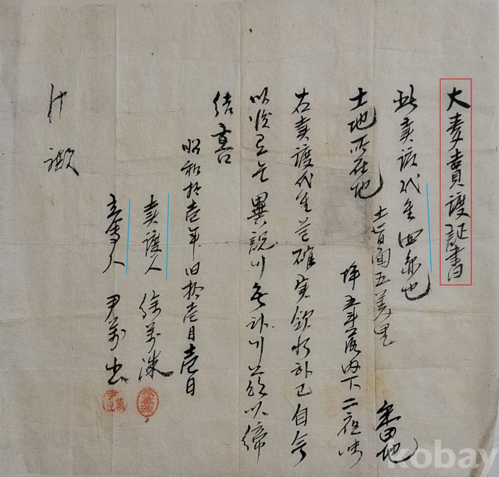 ◈ 소화(昭和) 11년(1936)에 대맥을 매도한 증서