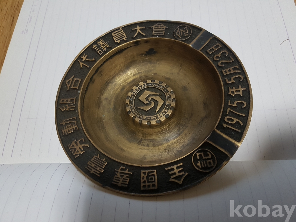 아리랑 무늬와 전국 전매 노동조합 글씨가 양각된 재떨이 1점 입니다