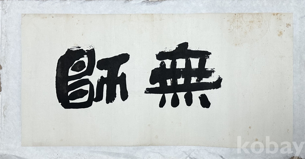 굵고 힘 있는 필선으로 두 글자를 크게 써 내려간 서예 작품입니다. 여백을 넓게 살린 단순한 구성 속에서 먹의 농담과 붓의 속도감이 잘 드러나며, 강한 장식성과 현대적인 조형미가 함께 느껴집니다. 화면에는 묵직한 획의 압력과 번짐, 거침 있는 붓끝의 흔적이 생생하게 남아 있어 감상성과 공간 연출 효과가 좋은 편입니다. 서예 및 문인 취향의 인테리어 소품, 수집용 작품으로 활용 가능합니다.