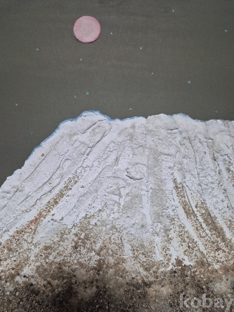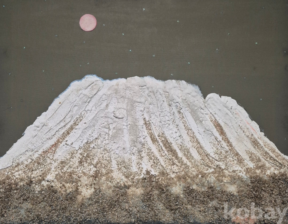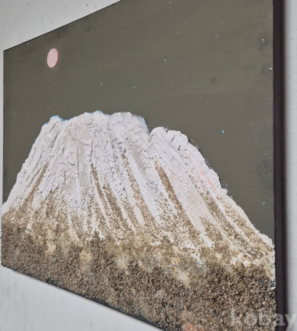 설악산 작품은 석채와 한국최초로 slag(철광석)을 재료로 이용하여 작품의 질감을