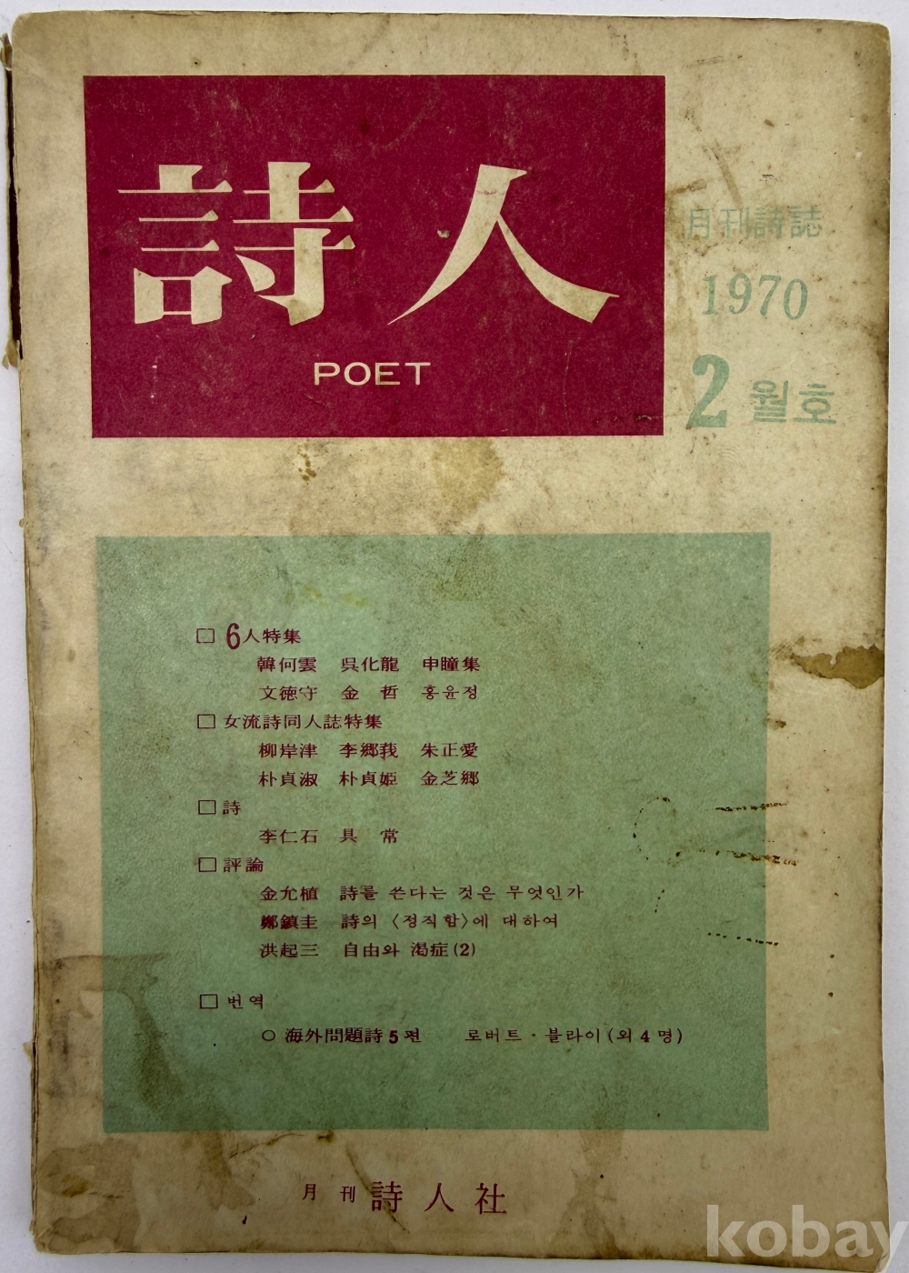 물 품 명 | <좋-았書! 2탄> [34] 1970년 발행, 월간 시지(詩誌) [시인] 2월호 1책 | |||||