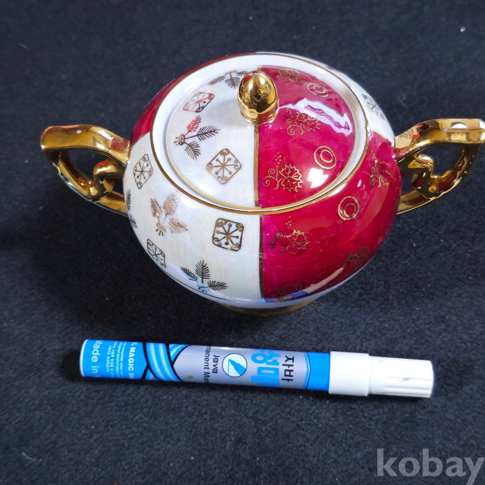 (((빈티지도자기/설탕통))) 오래전 GOLDEN APRICOT 행남사 빈티지 도자기설탕통