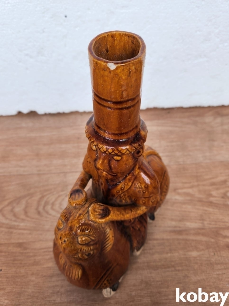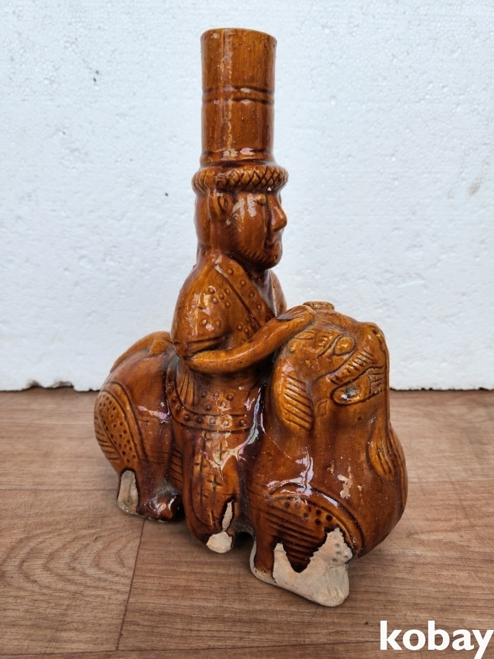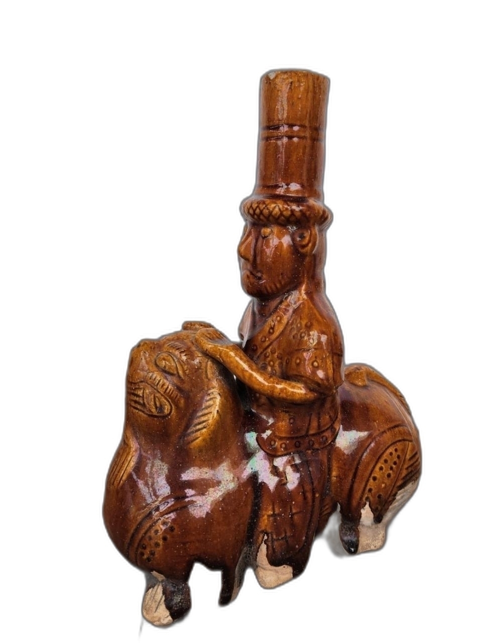 해태를 탄 인물 형상 도자기 입니다.
