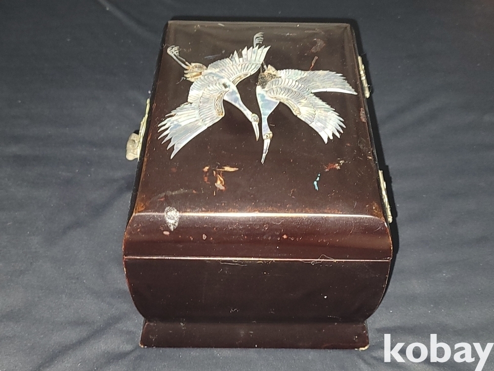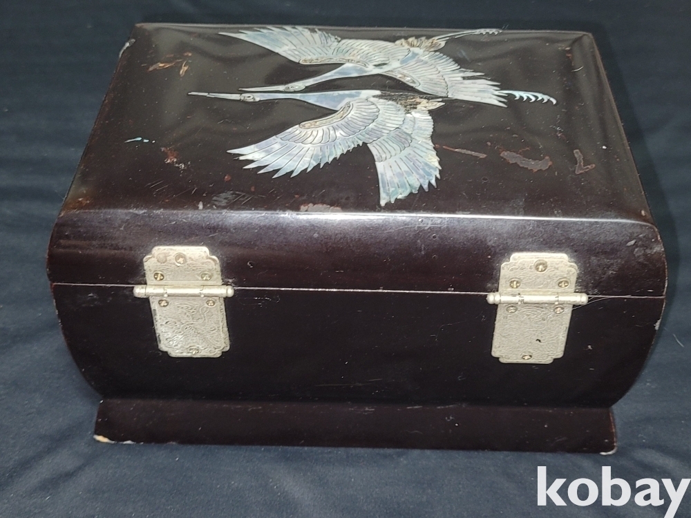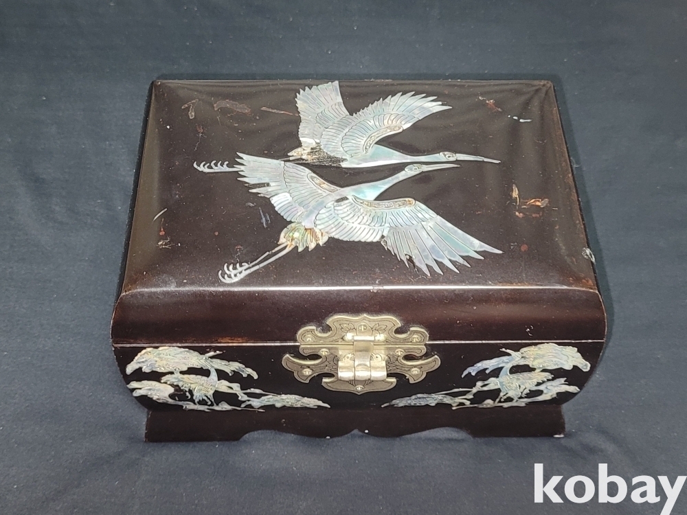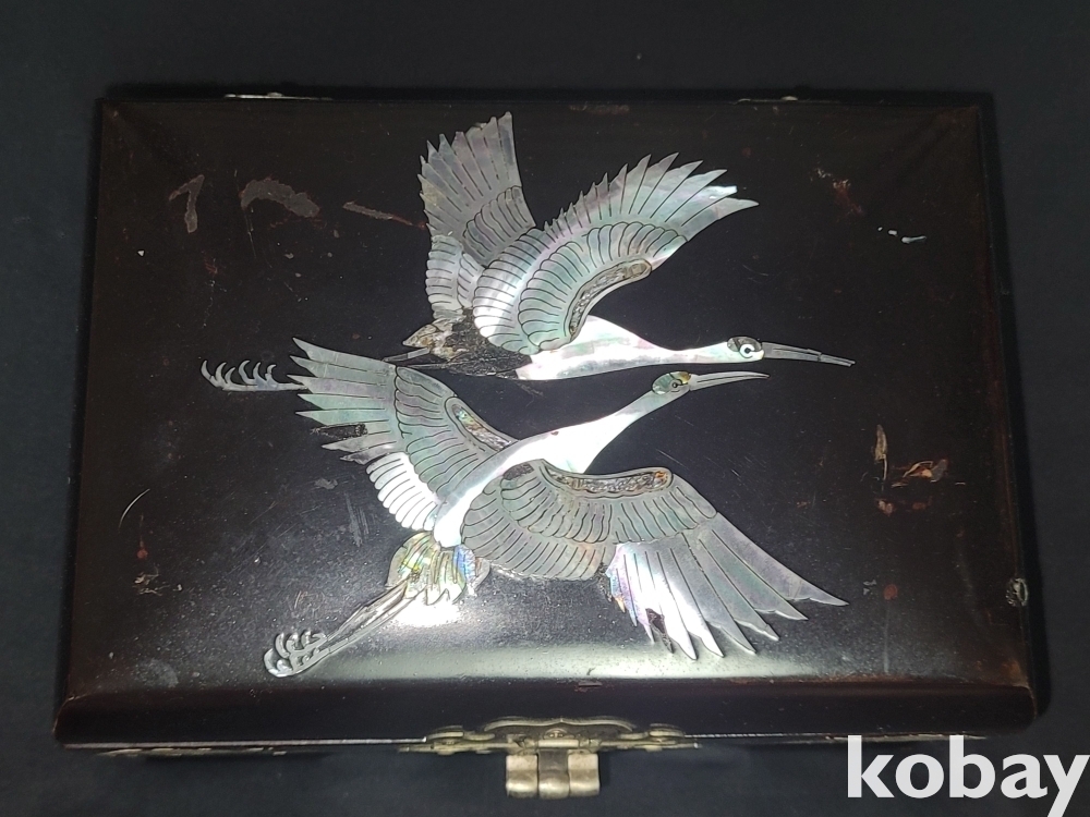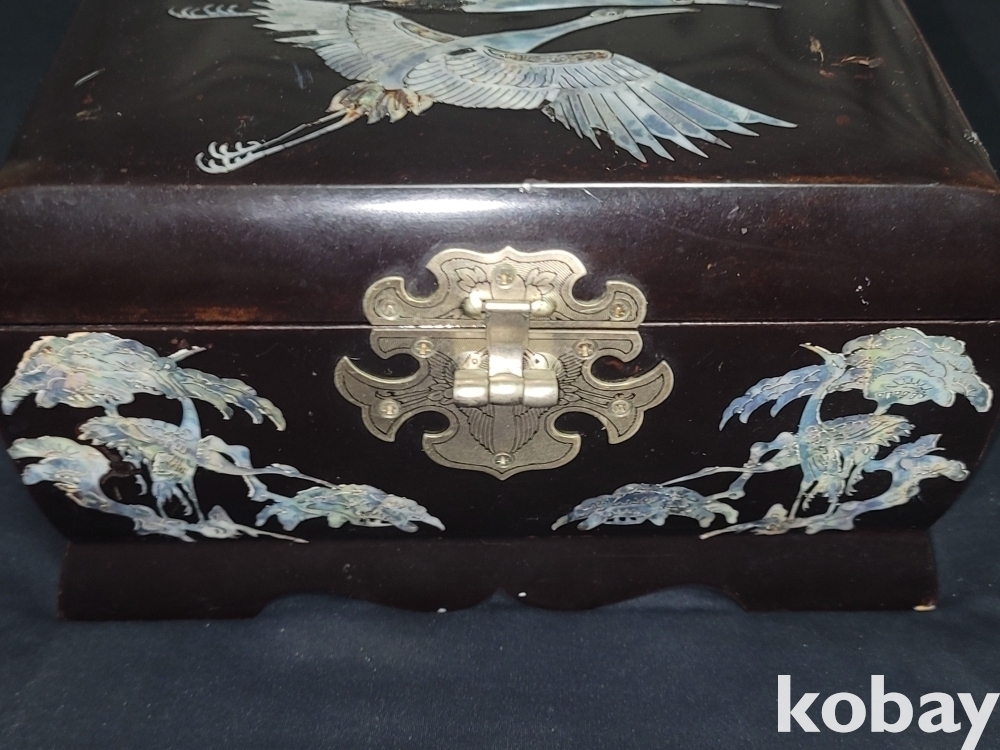 멋스러운 학이 그려있는 자개장식의 고급 오르골 자개 보석함입니다.