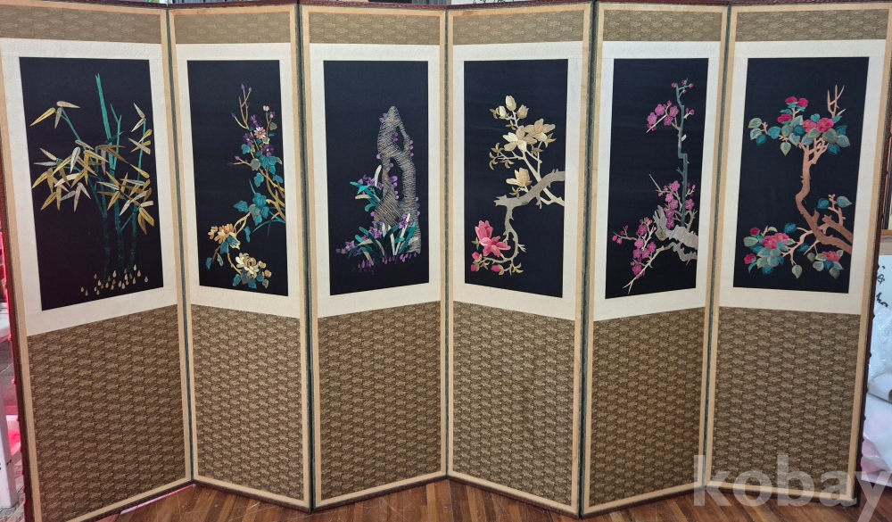 오래된 보기 드문 아름다운 손 수 병풍'이오니 이미지 등 두루 잘 참조하시고 본 수 병풍의 가치를 아시