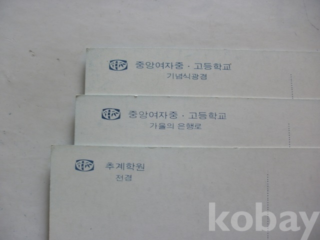 중앙여자 중고등학교 - 전경, 기년식 광경, 가을의 은행로 (우편엽서 3매일괄)