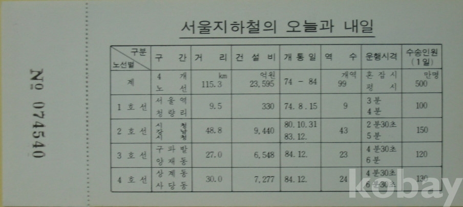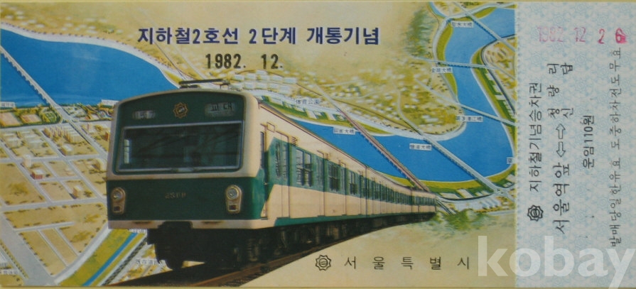 1982년 지하철 2호선 2단계 개통 기념 승차권