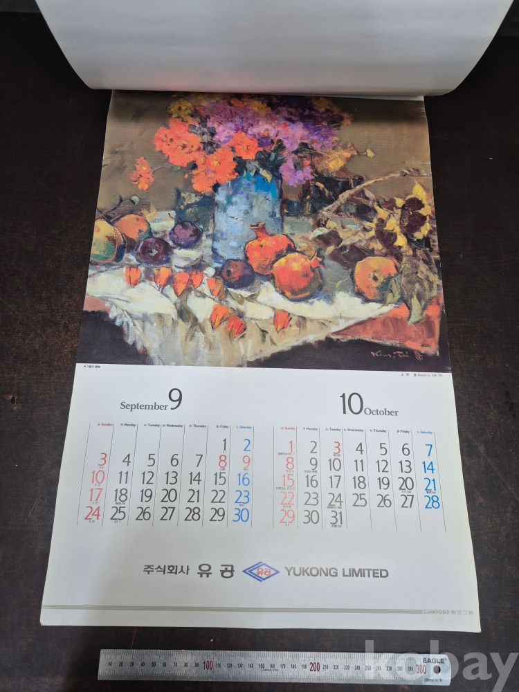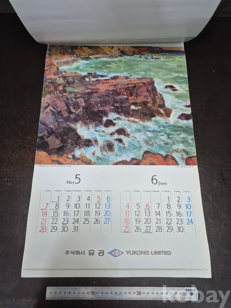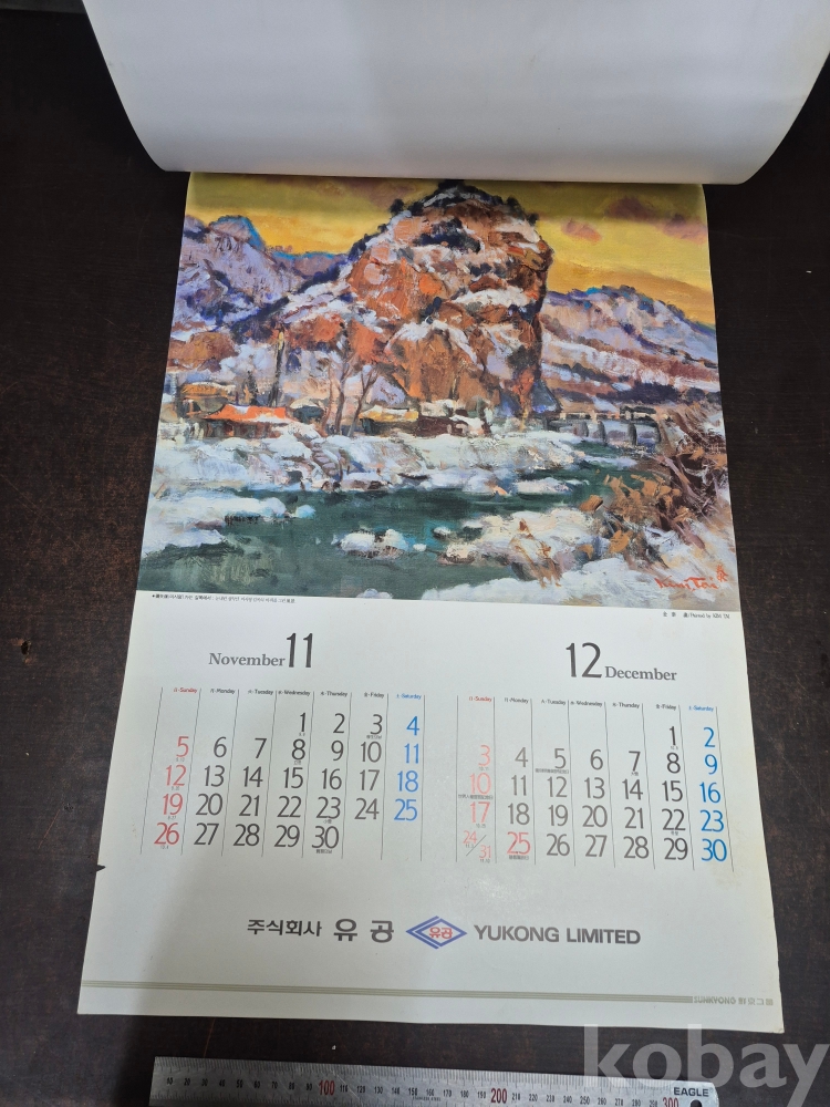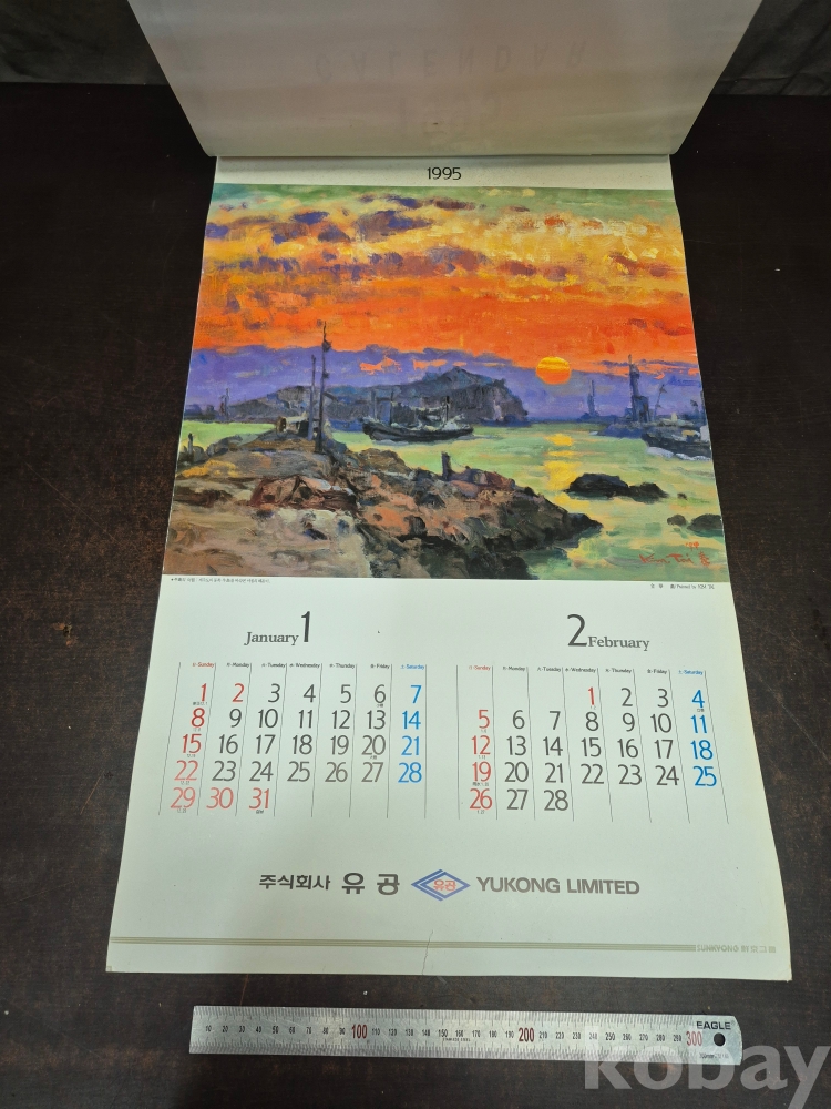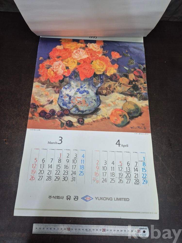 1995년 주식회사 유공 달력 1세대 작가들의 작품프린팅 되어있어요 유화작가 화가 김태 작품집입니다 42*70*0.5