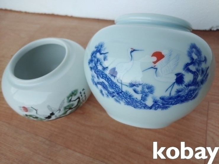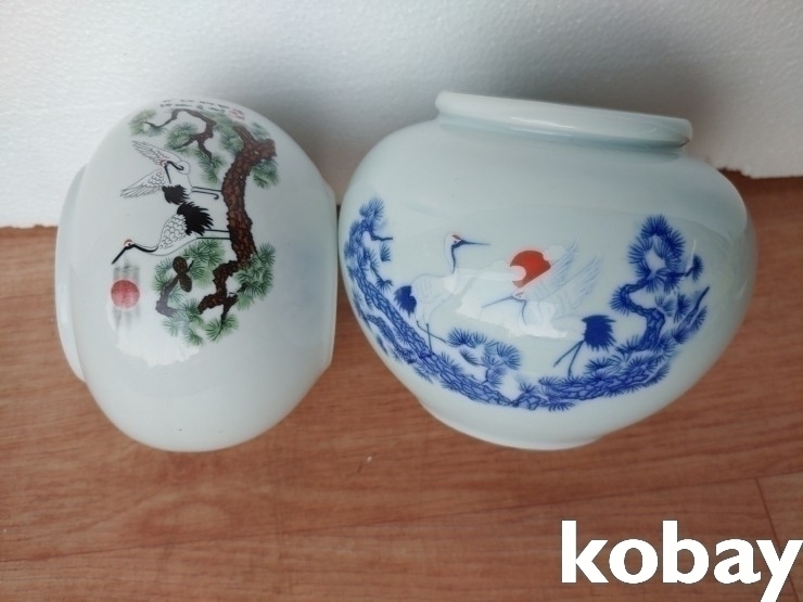 송학 그림이 있는 도자기 항 2개 입니다.