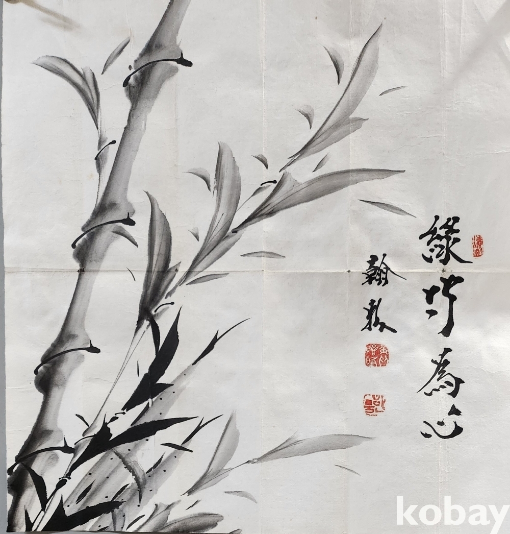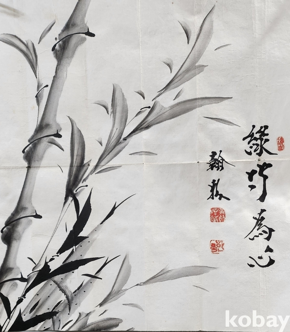 잘 그려진 수묵화로 괴석에 난 그림입니다,